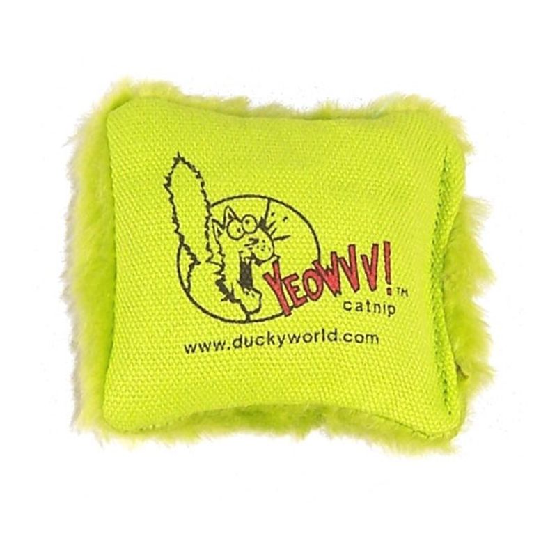 Yeowww är kända för sina fina och tåliga leksaker stoppade med den finaste kattmyntan! Leksakerna är handgjorda och tillverkas i USA med ekologiskt odlad kattmynta. Kudden är lurvig på en sida och tryckt canvas på den andra.
