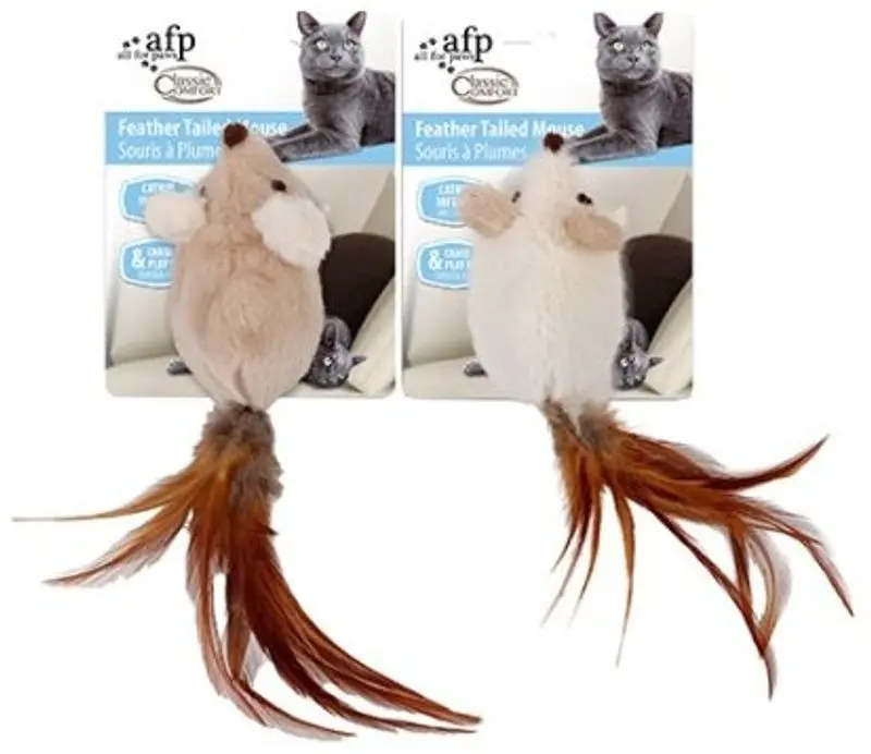 Klassiska möss i mjuka härliga tyger med crinkle fyllning och en lätt doft av kattmynta. Fjädrar till svans som lockar din katt till lek.