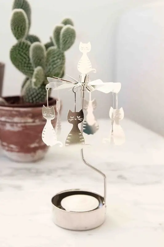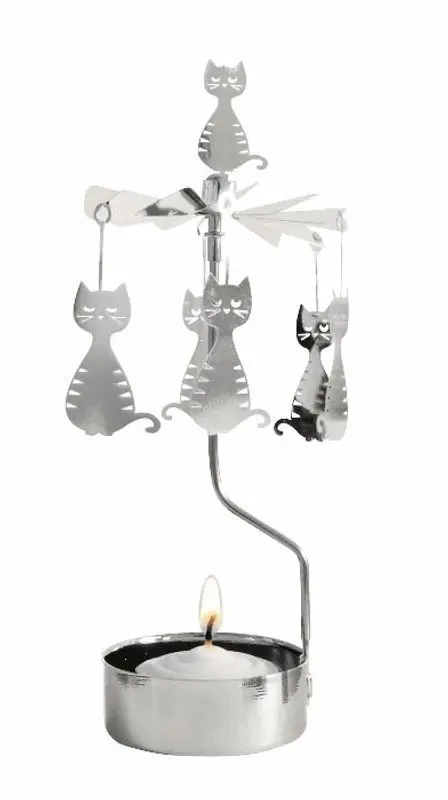 Klassiskt änglaspel som är jättefint att ha framme året runt! Tänd ett värmeljus och änglaspelet börjat snurra och de små blanka katterna är fina att titta på när de snurrar runt.