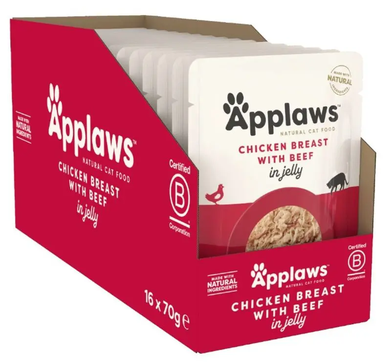 Köttbitar i gelé med kyckling och oxkött. Applaws våtfoder finns i flera smakkombinationer som kommer att tilltala även den mest kräsna av katter. Kattmat helt fri från gluten!