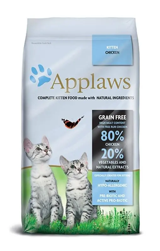 Applaws kitten är ett foder till kattungar och dräktiga honkatter helt utan konstgjorda färgämnen och konserveringsmedel och den innehåller heller inget spannmål! Applaws tillverkas med grundtanken om katten som ett köttätande djur och försöker i möjligaste mån att efterlikna en naturlig kost. Applaws innehåller inget tillsatt taurin eftersom det finns tillräckligt i köttmängden i detta foder.