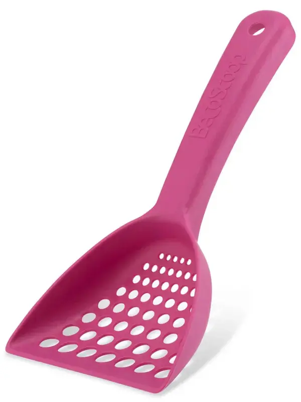 Becoscoop rensspade är väldigt stadig och något tyngre och kraftigare än vanliga plastspadar, vilket är en fördel när lådorna ska rensas. Observera att det är ett finmaskigt nät i denna spade så den passar bäst till finkornigt strö.