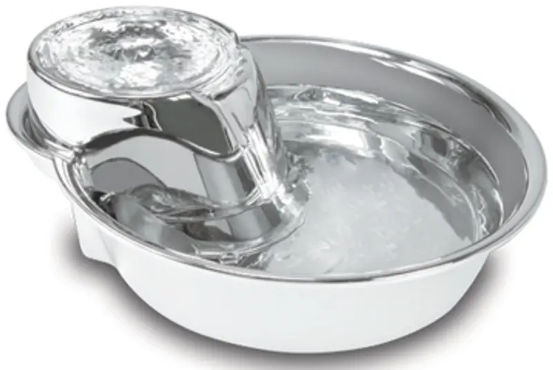 Från det populära märket PioneerPet kommer denna eleganta vattenfontän i rostfritt stål, där din katt kan välja att dricka från det porlande vattenflödet eller direkt ur den stora skålen.