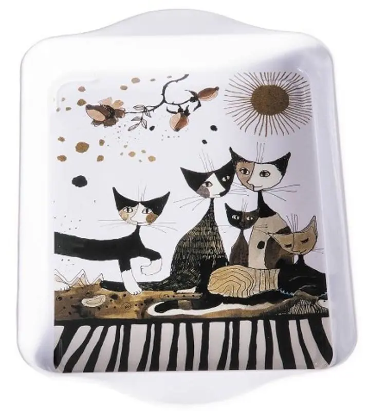 Liten bleckbricka i den nya serien "Sepia" från det populära märket Rosina Wachtmeister. En bricka i perfekt storlek för en temugg och en macka, eller kanske kaffe och bulle. Frukostbricka eller liten fikabricka med härliga kattmotiv.