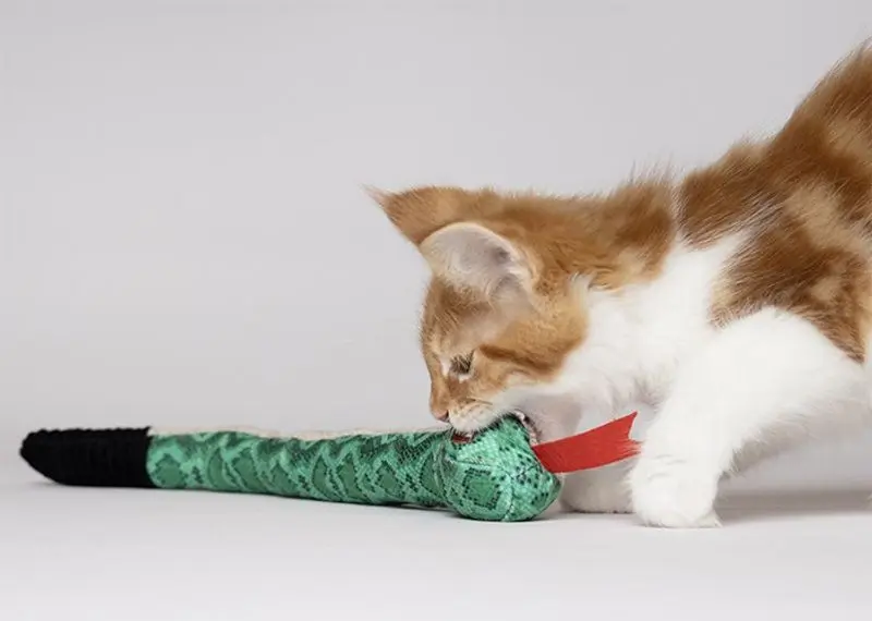 Sisso Snake är en längre kattleksak - 37 cm lång - perfekt storlek och form för att främja brottningslekar och sparkar med baktassarna (bunny-kicks)!