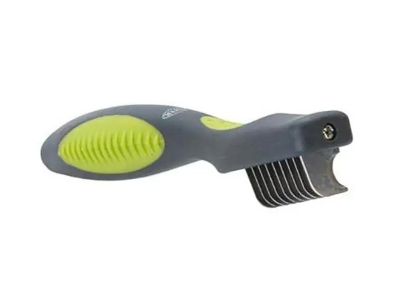 Praktisk tovutredare med fem eller nio blad från populära pälsvårdsserien Buster. De vassa bladen skär tovan och gör att den på så sätt blir lättare att reda ut samtidigt som den bevarar pälsens naturliga längd.
