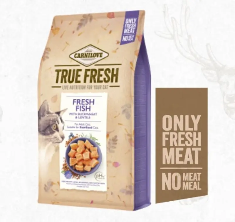 True Fresh fish från Carnilove är ett välsmakande torrfoder med ett högt fiskinehåll och speciell tillverkningsprocess. Fisken i True Fresh Fish processas i färskt tillstånd, vilket gör det här torrfodret väldigt smakrikt och mer lättsmält. Den här tillverkningsprocessen bevarar ingrediensernas ursprungliga egenskaper - till och med den kräsna katten brukar uppskatta den naturliga smaken.
