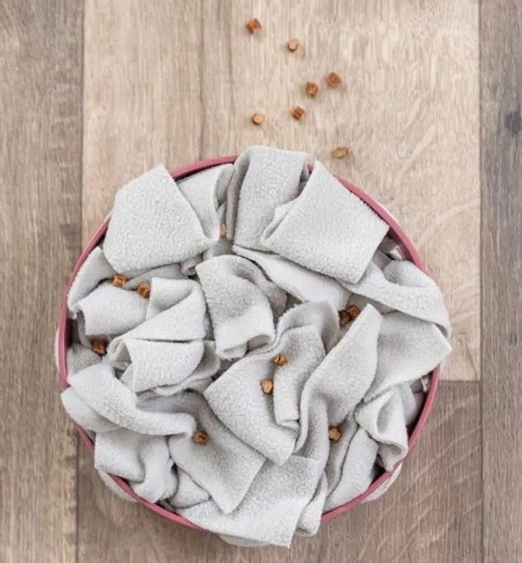 En ny och fiffig form av "Sniffin blanket". Här strör du ut, eller rullar in (beroende på svårighetsgrad) kattens godis eller torrfoder i filtbitar och packar in i ramen.