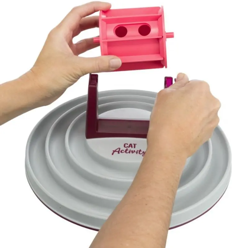 Aktiveringsmatskål och kattleksak från Trixies aktiveringsserie "Cat Activity". Roller Bowl har en snurra upptill där man stoppar in kattens godis eller torrfoder, snurran ställs sedan in på en lämplig svårighetsgrad för just din katt.
