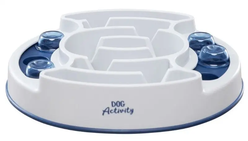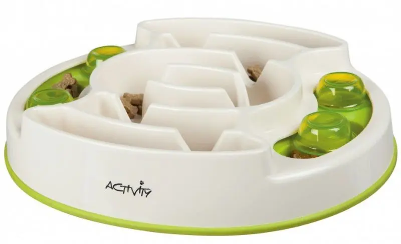 Denna aktiveringsplatta från Trixie i ny spännande design används till kattens torrfoder eller för extra smarrigt kattgodis.