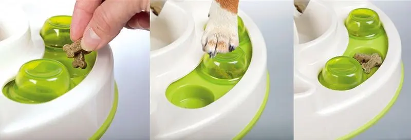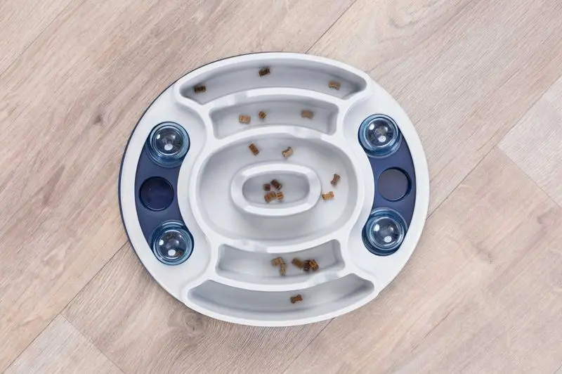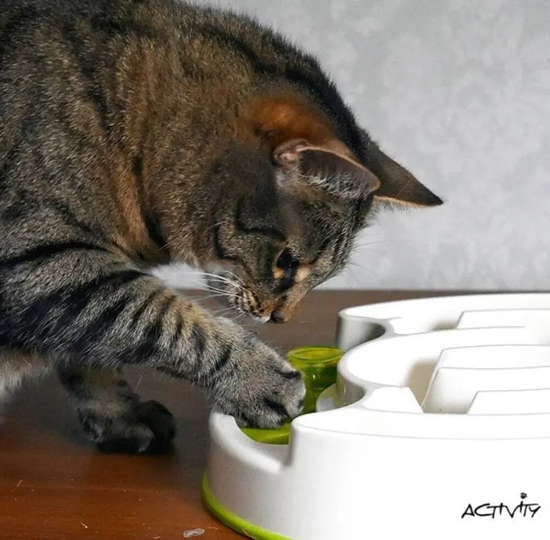 Plocka gärna bort kattens matskål helt och hållet och servera den dagliga torrfodergivan på denna aktiveringsplatta.