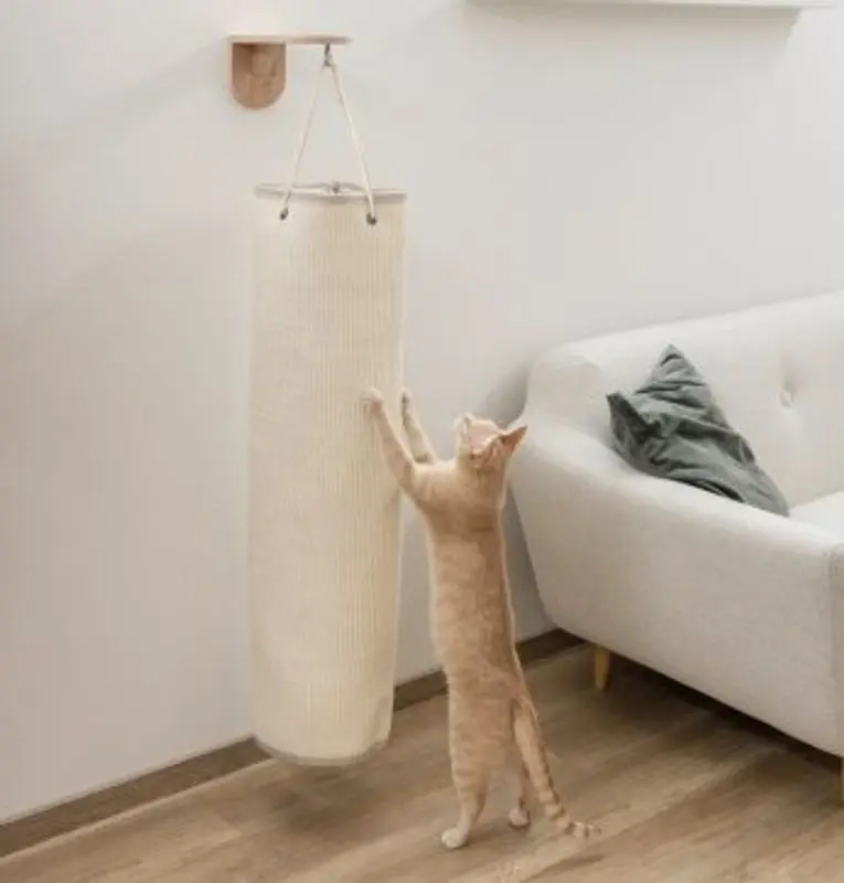 Tillverkad av högkvalitativ sisalväv med vaddering inuti. Längden på klöspelaren är något justerbar med repen upptill.