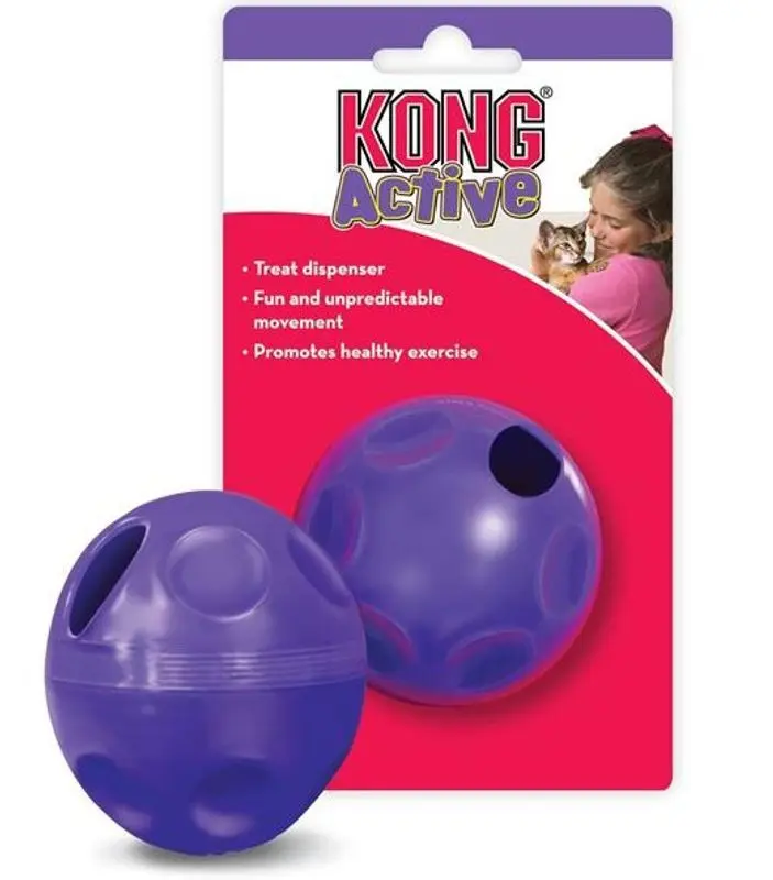 Fyll din Cat treat ball från märket Kong med kattgodis, kattmynta eller kattens dagliga torrfoder. På grund av den lite mindre storleken kan detta vara en bra nybörjarboll för den katt som inte använt en aktiveringskula tidigare, den är lätt att rulla över golvet med tassen och godisbitarna trillar ur allt eftersom.