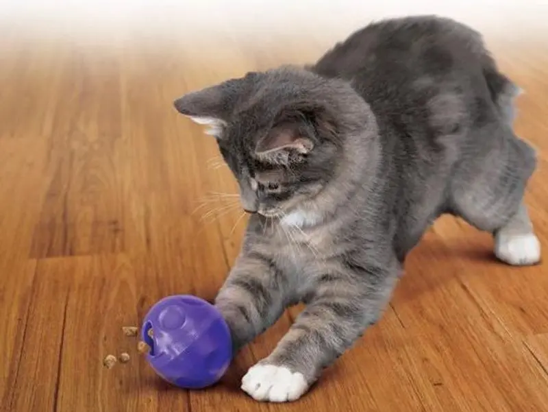Katten belönas när maten eller godiset trillar ur bollen och stimulerar kattens nyfikenhet och låter katten klura på problemet med maten i bollen - hjärngympa gör gott för både stora och små katter!!