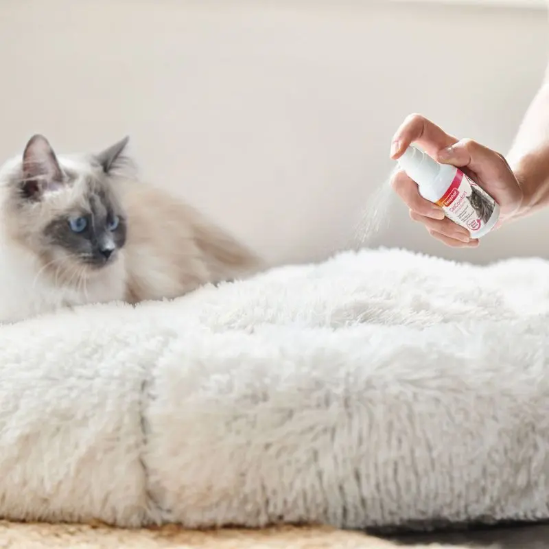 Obs, spraya på kattens kattsäng, klösträd eller transportbur och låt vädra en god stund innan katter introduceras för platsen. Spraya aldrig direkt på katten eller i direkt närhet av din katt.