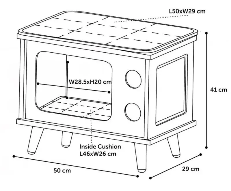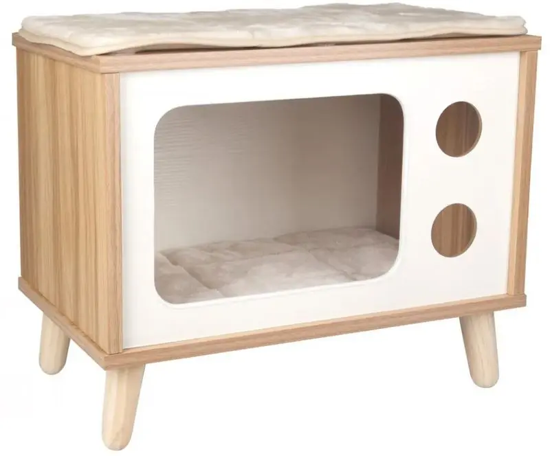 Fino kattmöbel är en jättefin liten kattgömma som påminner lite om en retro-tv i sin design. Fino blir en fin inredningsdetalj i ditt hem och ett mysigt krypin för din katt, passar både för lekstunden och som sovställe.