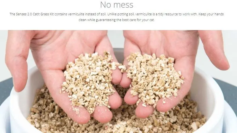 Man blandar fröna med substratet och behöver därmed ingen jord för denna kattgräsodling.