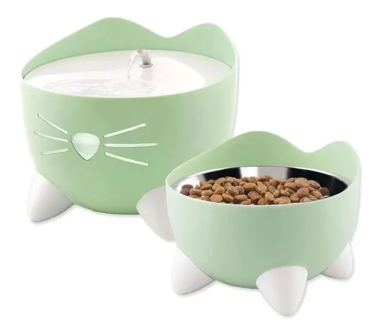 I detta prisvärda paket har CatIt packat ihop sin populära grön vattenfontän i PIXI-serien tillsammans med en grön upphöjd ergonomisk matskål (som ej går att köpa separat i ljusgrön färg). De har även lagt med 3 st filter i paketet så att du har 3 byten med kolfilter till fontänen. I paketet finns även 1 extra rostfri skål som passar i matskålen, så att det är lätt att ha en matskål framme och en t ex i diskmaskinen.