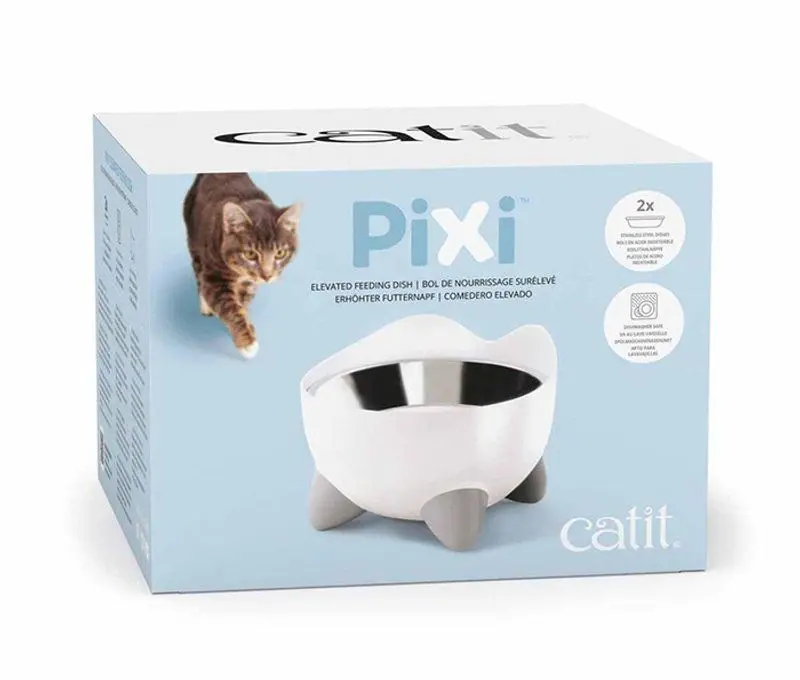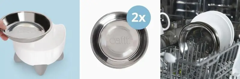 Extra insats-skål ingår: Varje Catit PIXI Kattmatskål levereras med en extra insats-skål så att du kan ha en i diskmaskinen medan den andra är i användning.