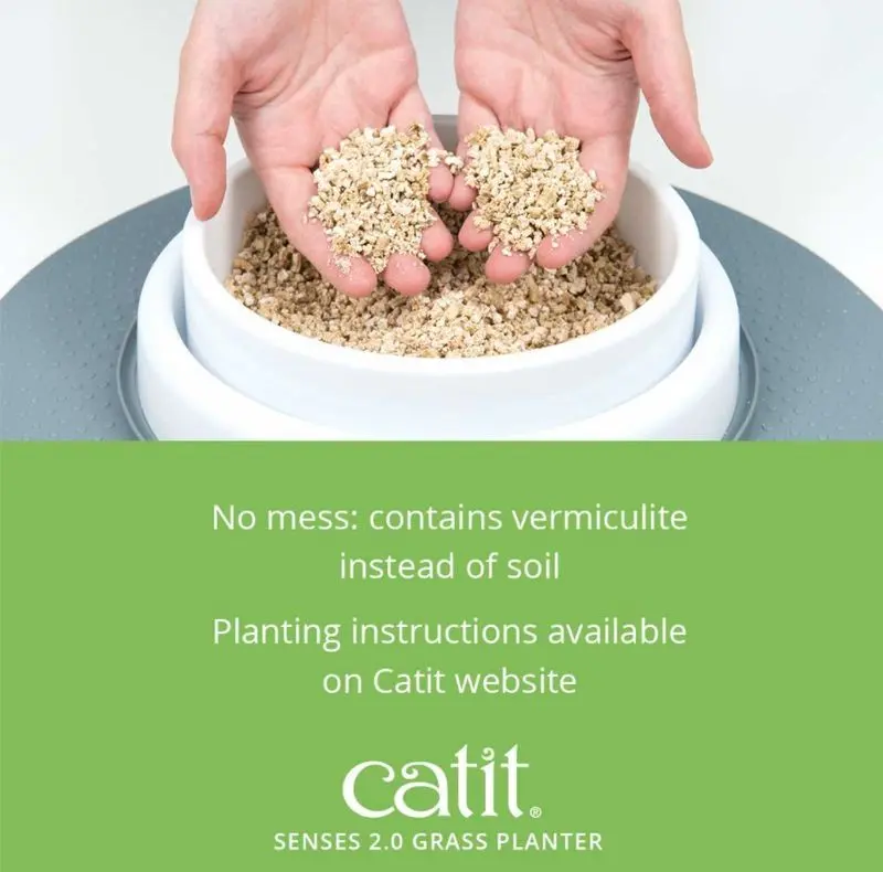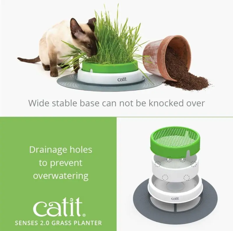 Grass Planter är en smidig kattgräs-station för dig och din katt, från den populära CatIt Senses 2.0-serien. Gräs är en naturlig källa till kostfiber för katter, det hjälper kattens matsmältningssystem och bidrar till att förhindra uppkomst av hårbollar.