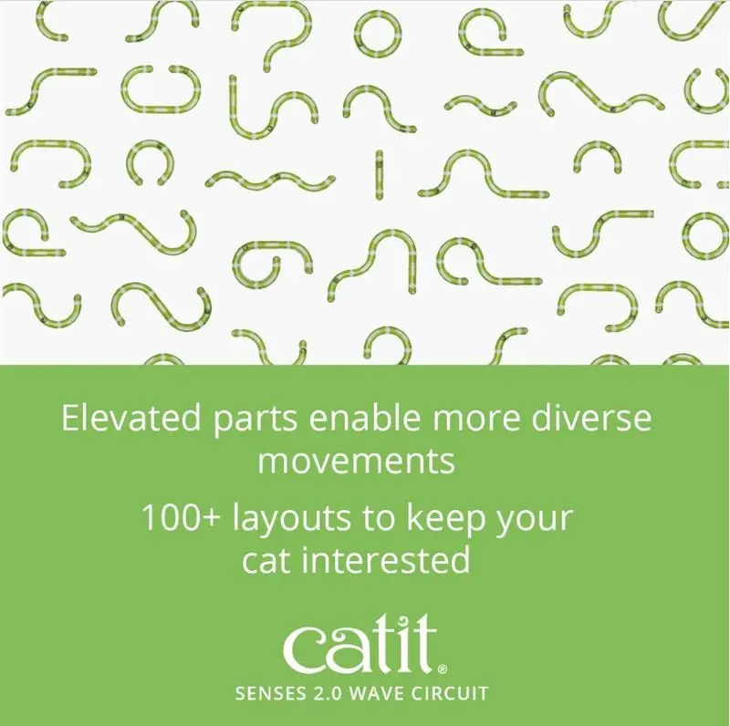 Cat It Senses 2.0 Wave Circuit är en bollbana för din katt som du kan bygga ihop på flera olika sätt. Katten når bollen genom titt-ut-hål i ovansidan och kan skjutsa den fram och tillbaka i banan. Wave Circuit har förhöjningar i banan för mer olika rörelser. Själva bollen kan dock aldrig smita ut på golvet och kommer garanterat aldrig att hamna under soffan!