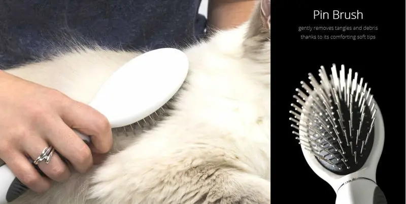 Pinnborsten reder skonsamt ut trassel och avlägsnar skräp, den har soft tips. Metallkardan får bort mjäll samt samt reder ut små enkla knutar i pälsen före de tovar ihop sig. Har det redan hunnit bli tovor används tovutredaren för att skära bort tovorna. Kammen reder både ut underpäls och överpäls, de rullande pinnarna gör kamningen skonsam. Med klosaxen klipper du de yttersta spetsarna på din katts klor (akta pulpan), vilket förhindrar brutna och delade klor, men även skyddar era möbler.