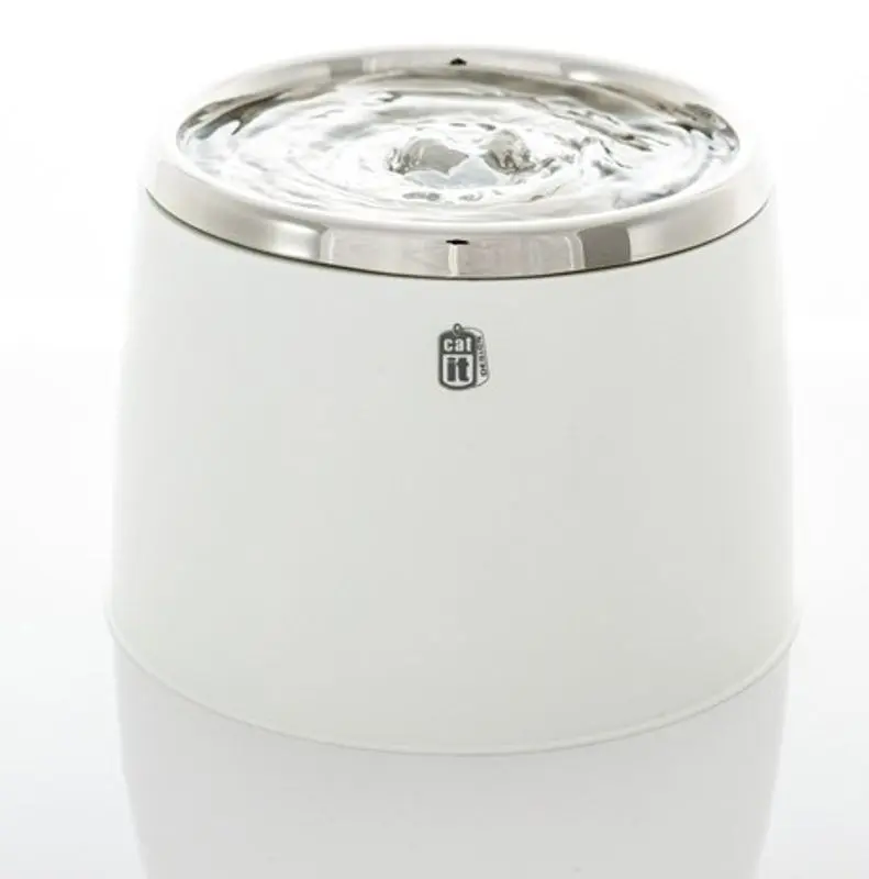 Den rostfria toppen på denna modell gör att den är hygienisk och går att köra i diskmaskinen. Den stora ytan upptill bidrat till att fontänen syresätter vattnet mer effektivt och kyler det samtidigt.