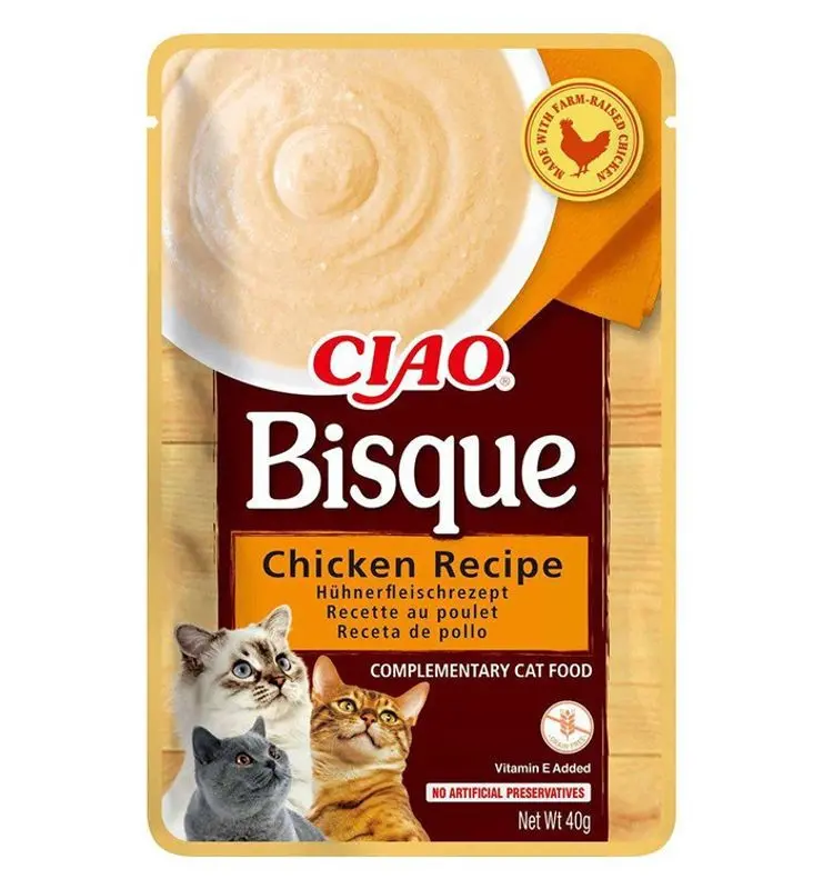 Churu Bisque är den ultimata delikatessen, bekvämt förpackad i portionspåse. Den krämiga kyckling-purén, som liknar de ycket omtyckta Churu kattgodis, har en något tjockare konsistens som gör den till det perfekta måltids-tillbehöret för din kisse. Churu Bisque är ett förstklassigt kompletteringsfoder som kommer att förgylla din katts dag.