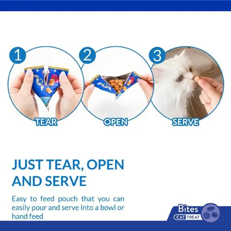 Ges som godis. Ska inte ersätta fullvärdig måltid. Se till att katten alltid har tillgång till färskt vatten.