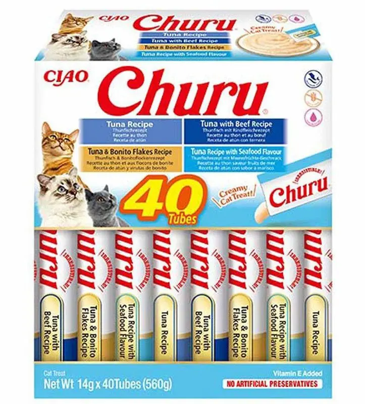 I detta storpack får du 40 st Churu's, 10 av varje smak med tonfisk som bas.