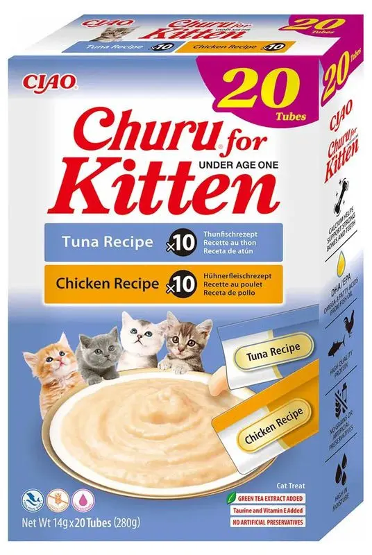 Mjukt, gott och nyttigt! Churu Creamy Kitten är ett krämigt kattgodis speciellt framtaget för kattungar upp till 12 månader. Förpackning innehåller 20 st oemotståndliga purétuber som du enkelt kan klämma ut direkt till din kattunge - från handen, på ett fat eller som smakförhöjare på maten.