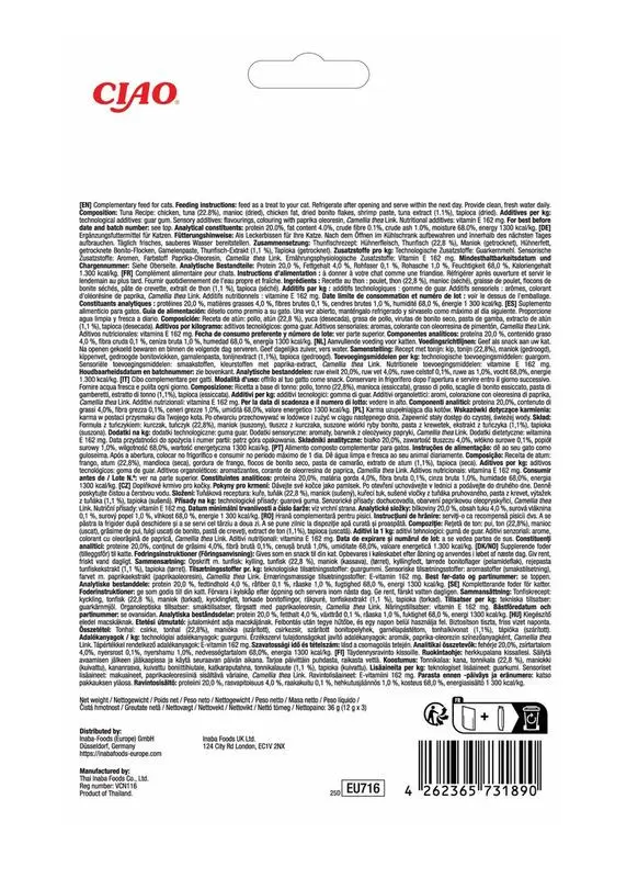 är mjuka, läckra godbitar fyllda med oemotståndlig Churu-kräm. Tillverkade av 100% gårdsuppfödd kyckling och vildfångad tonfisk, vilket gör dem extra smakrika - perfekt för både kräsna och matglada katter.