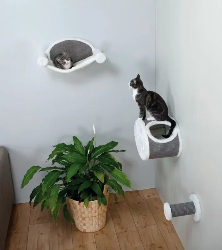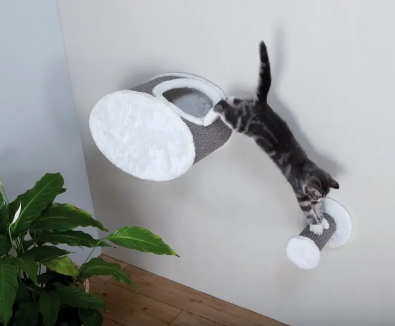 Kattgömma med plyschtyg och sisalvägg för väggmontering. En härlig sovplats/lekplats och kattgömma för din katt som du kan hänga på den höjd din katt gillar att vara på.