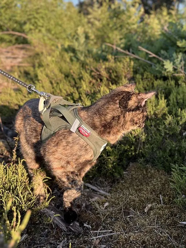 Selen Curli Vest Clasp Air Mesh från Schweiziska Curli, är en lättviktssele för katt eller små hundar. Det här är en sele som är mycket enkel att sätta på och ta av - katten kliver i med båda frambenen i var sitt hål, innan selen enkelt stängs med det nya clasp-spännet på ryggen. Spännet är speciellt framtaget för att kunna spännas med en hand.