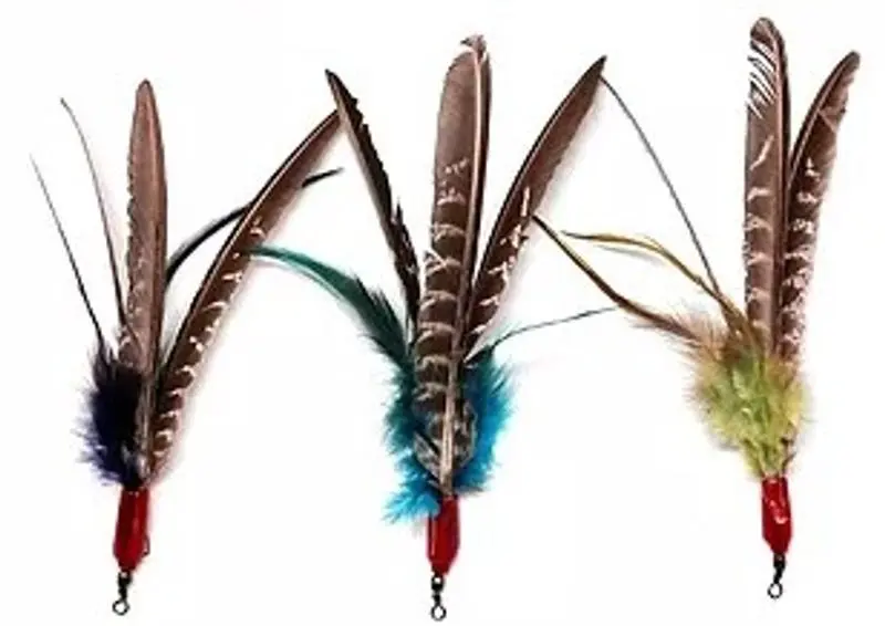Da Bird fjäderleksaker är handgjorda och tillverkas i USA. Det finns 2 olika fjäderval, en helfärgad riktigt färgglad Turkey-feather och en mer naturell Guinea Feather med lite färg. Alla fjädrar levereras i blandade färger.