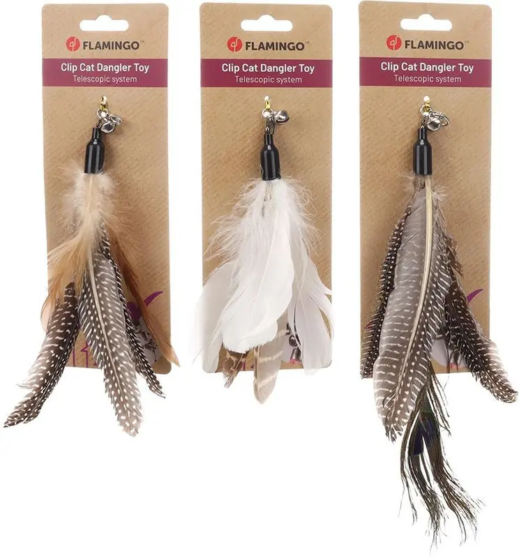 Fäst refill-leksaken i ditt Dangler-spö och se hur din katt hoppar, jagar och slår efter fjädrarna, precis som med ett riktigt byte.