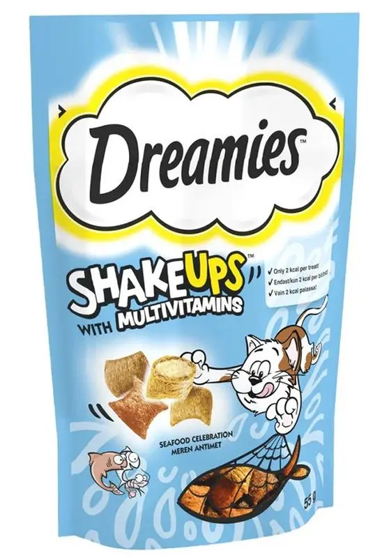 Katter älskar seafood, men har sällan möjlighet att fiska. Som tur är har Dreamies letat i havet efter inspiration för de nya olika smakerna och inkluderat en hälsosam skvätt multivitaminer. Så unna din katt denna fångst, med variation i smak, form och färg i påsen.
