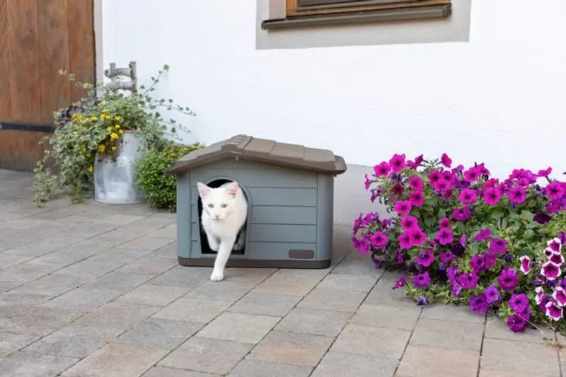 Katthuset är vattentätt och underhållsfritt, UV- och väderbeständigt och kan pga materialegenskaperna inte ruttna.