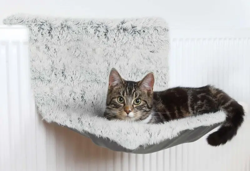 Elementsängen är både mysig och praktisk, och kan snabbt bli en favorit - du hänger bädden direkt på elementet så att katten får en varm och skön plats att ligga i. Elementsäng Harvey har en stadig metallram med ett överdrag i långhårig plysch på ovansidan, och grå moccaimitation (polyester) på undersidan.