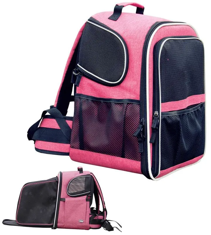 Denna ryggsäck håller formen och är riktigt stadig. Den är tillverkad av slitstark mikrofiber och är lätt att rengöra. De tre nätinsatserna bidrar till god ventilation och den stora ingångsöppningen säkerställer enkel och bekväm isättning av din katt.