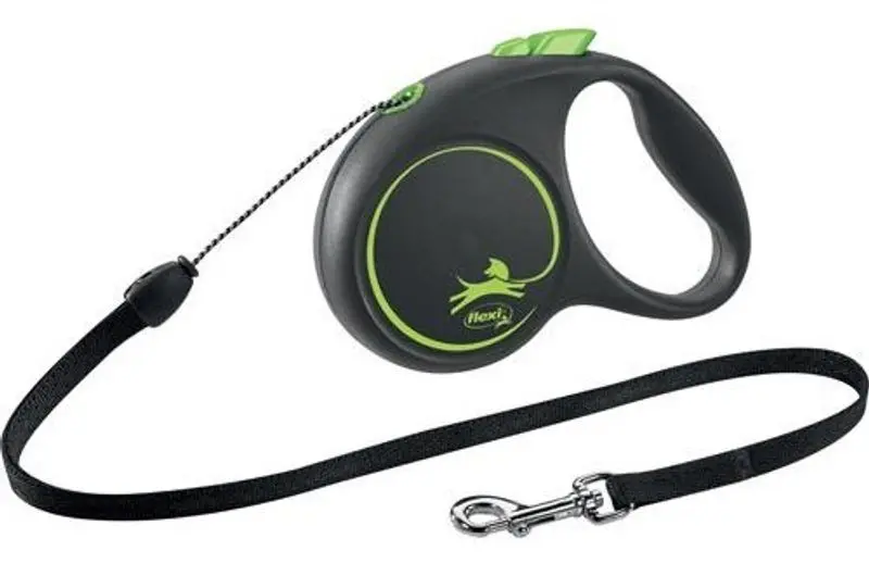 Flexikoppel Black Design är ett klassiskt rullkoppel, enkelt och funktionellt med en lina som har en längd på 5 meter. Handgreppet är komfortabelt och lätthanterligt för matte eller husse som håller i kopplet. Linan löper smidigt och trasslar inte, och med knappen går det att låsa längden på linan om man inte vill nyttja alla 5 meter.