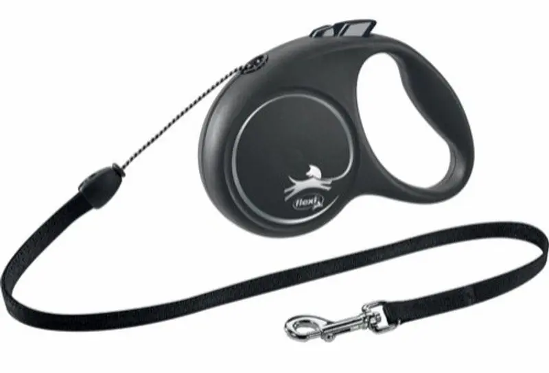Flexikoppel Black Design är ett klassiskt rullkoppel, enkelt och funktionellt med en lina som går att dra ut till 5 meter. Handgreppet är bekvämt och lätthanterligt för matte eller husse som håller i kopplet. Linan löper smidigt och trasslar inte, och med knappen går det att låsa längden på linan om man inte vill nyttja alla 5 meter.