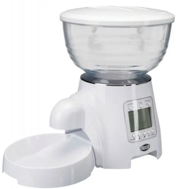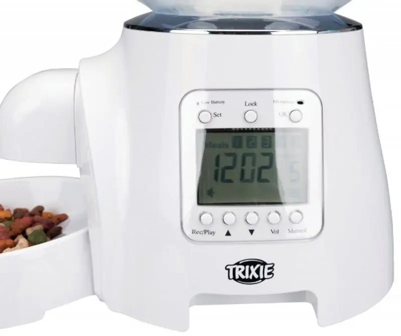 Du kan programmera foderautomaten upp till 5 uppmätta måltider under en dag, minsta fodergiva är 25 ml och största fodergiva 500 ml. TX7 rymmer 5 liter torrfoder i behållaren. Lätt att använda med enkel påfyllning ovanifrån, enkel rengöring och lätt att programmera med LCD-display. Transparant behållare så att man med lätthet kan se om det behövs påfyllning i foderautomaten.