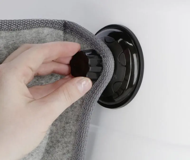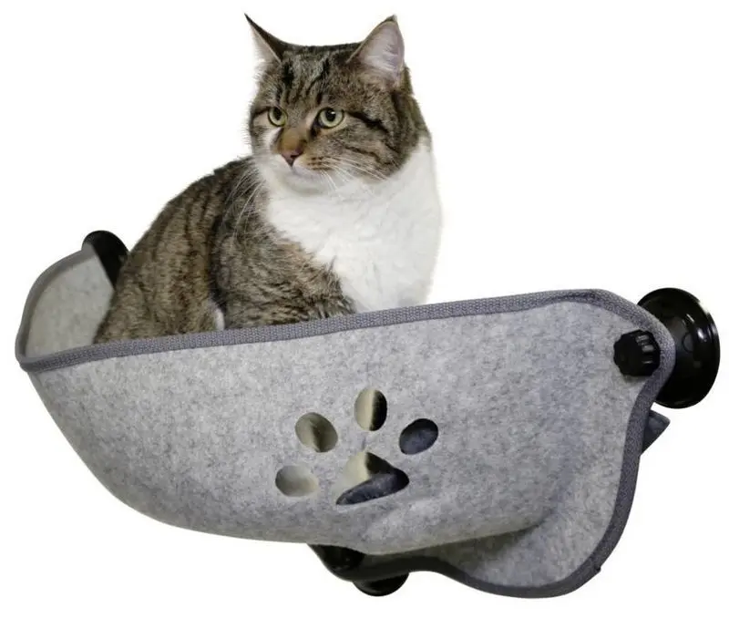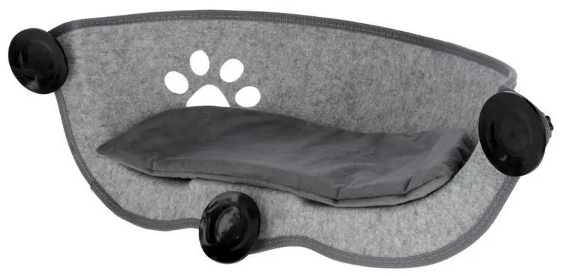 Bädden hängs upp i ett fönster med hjälp av sugkoppar på dubbelglasade eller isolerade fönsterrutor. Denna modell klarar upp till 12 kg katt. Observera att fönstret måste vara rengjort när sugkopparna sätts fast, följ instruktionerna på förpackningen! Låt sugkopparna sitta minst ett dygn utan tyngd (dvs utan katt i bädden).