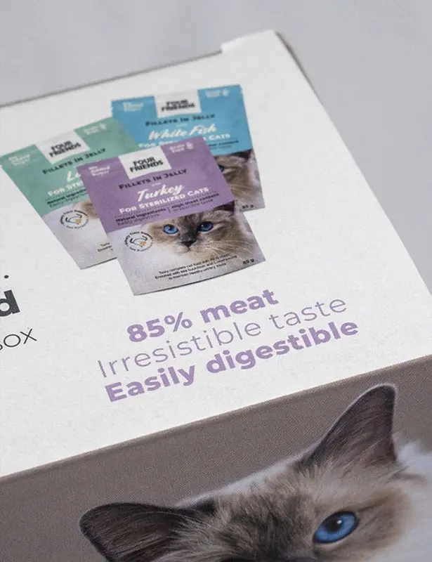 Den här blötmaten är väldigt mumsig med filéer i en läcker sås, den är också nyttig för katten, och som pricken över i:et har den dessutom ett högt köttinnehåll på 85%. Vad mer kan en finsmakare önska sig?