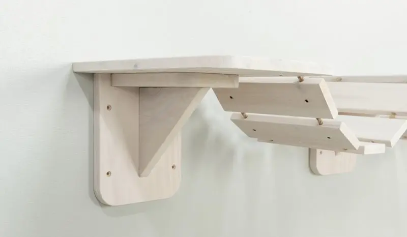 Ingår ej: skruvar/expanders för att montera hyllan på väggen. Ta hjälp från ett byggvaruhus för att få rätt skruv/expander för just ert väggmaterial (gips/trä/betong?) samt för att klara att hålla upp vikten på era katter.