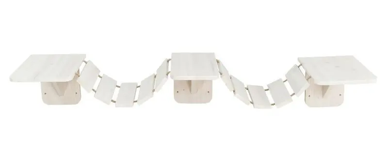 Hängbron kan monteras helt plant, som en passage som kanske leder din katt från t ex klösträdets högsta punkt och vidare till en garderob. Eller så kan den monteras lite lutande så att den blir en klätterstege, kanske från byrån och upp till klösträdet. Bara er fantasi sätter gränserna för denna roliga produkt.