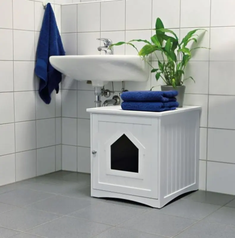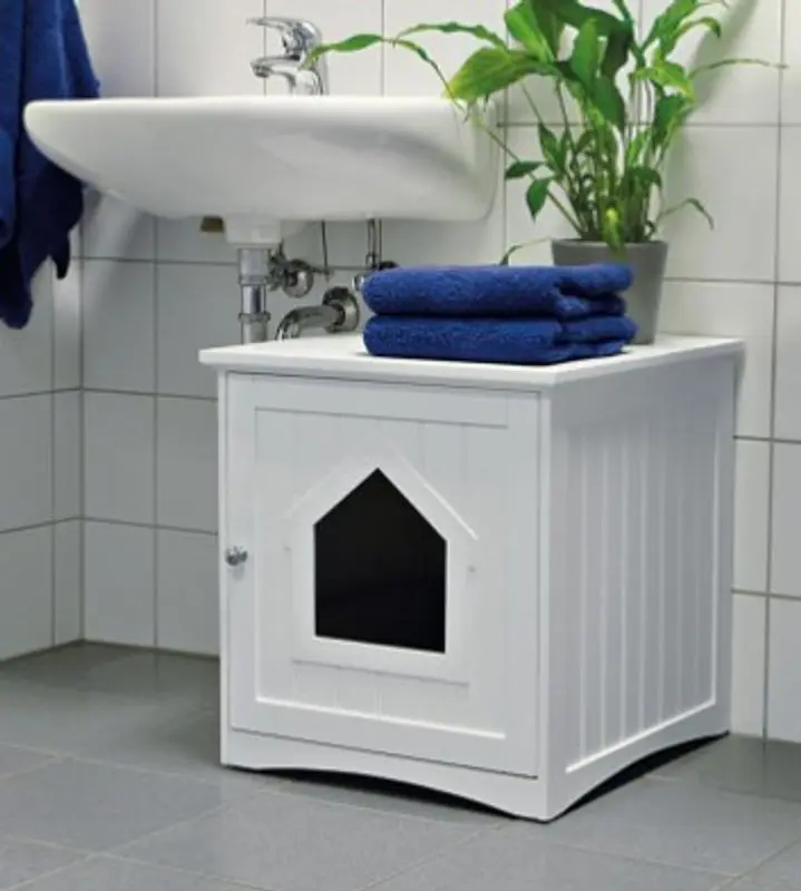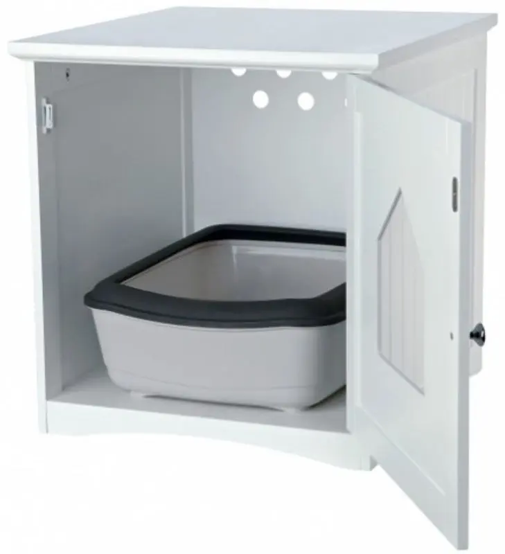 Superfint vitt och stilrent skåp eller möbel med flera användningsområden. Den fungerar perfekt för att gömma din kattlåda, snygg att ha stående både i badrummet eller t ex i hallen. Eftersom dörren i fronten går att öppna är det lätt att rengöra kattlådan!