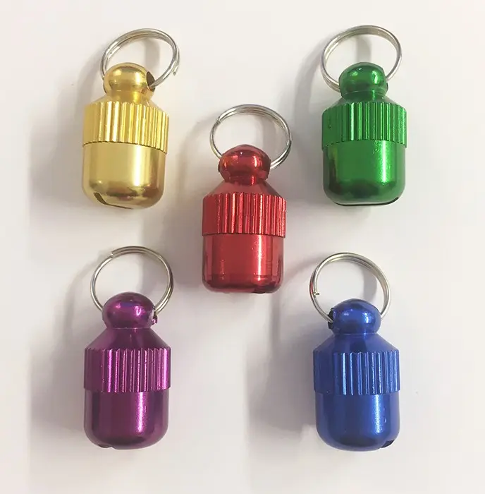Den här ID-tuben finns i fem olika färger: blå, röd, grön, lila och guld. Låt din katt välja sin favoritfärg, eller kanske en färg som matchar halsbandet.