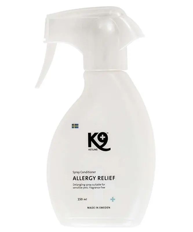 K9 Allergy Relief Spray innehåller naturliga extrakt från sjögräs hjälper till att återställa en skadad hårbotten (pälsbotten) och ger en långvarig återfuktning. Sprayen bidrar även till att minska förekomsten av allergener i pälsen.